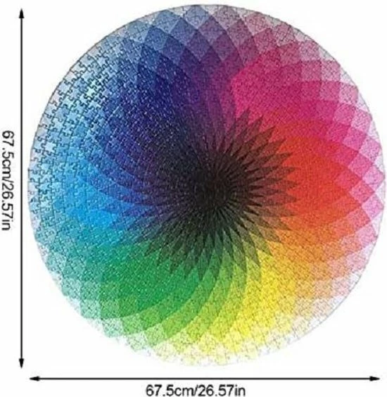 Deze geometrische regenboogpuzzel van 1000 stukjes is een echte uitdaging voor jong en oud, voor zowel beginnende als doorgewinterde puzzelfanaten! Door zijn ronde vorm en brede kleurenspectrum is deze puzzel extra leuk voor iedereen die van een leuke puzzeluitdaging houdt!