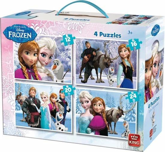 Maak prachtige Disney Frozen puzzels deze 4-in-1 puzzelset. De puzzels hebben 12, 16, 20 en 24 stukjes. Berg de puzzels op in het handige koffertje. Op de vier verschillende puzzels staan natuurlijk Elsa, Anna, Olaf en nog veel meer characters uit Frozen.