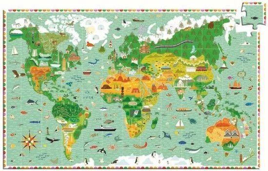 Maak een wereldreis langs alle continenten en leer alles over onze mooie planeet! Het opera-gebouw in Sydney, de Taj Mahal of de Big Ben… op deze puzzel vind je ze allemaal terug! Bij de puzzel ontvang je een begeleidend boekje waarin van elk continent de belangrijkste monumenten, dieren en fauna beschreven worden. Ook wordt er een real-size poster meegeleverd waarop de puzzel gemaakt kan worden wanneer het puzzelen nog te lastig is.