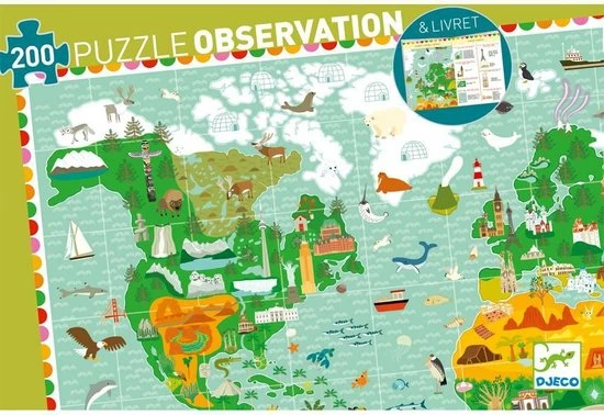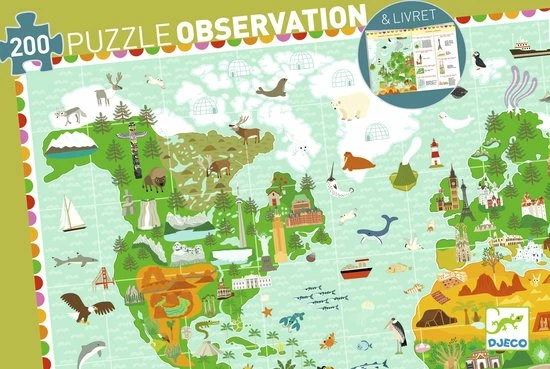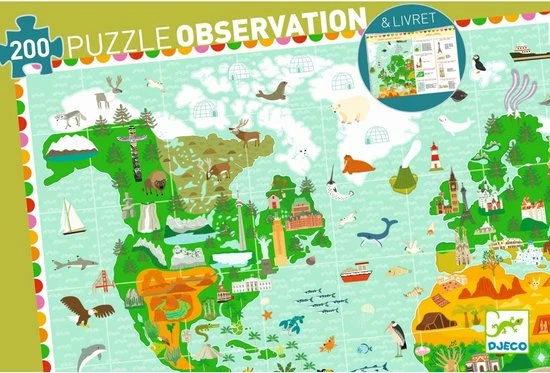 Djeco Observatie Puzzel Wereldreis (200 stukjes)