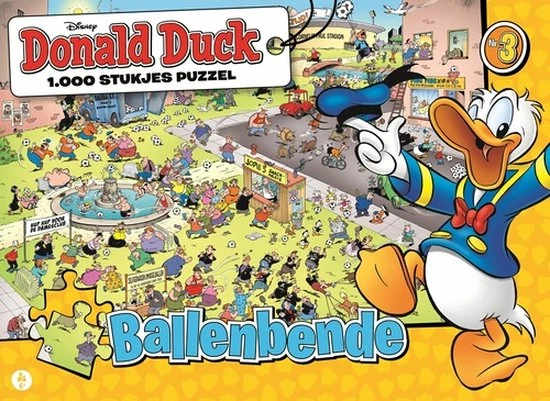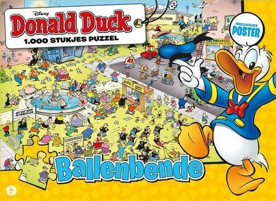 Sinds de start van het weekblad ?Donald Duck? in oktober 1952, is dit blad niet meer weg te denken uit de Nederlandse woonkamer. Al ruim 65 jaar wordt jong en oud vermaakt met de spannende avonturen van de onfortuinlijke eend. Deze puzzelplaat is eerder als megaposter verschenen in het vrolijke weekblad. Doordat deze puzzel is opgebouwd uit 1.000 stukjes is hij geschikt voor puzzelaars van 6 tot 106!