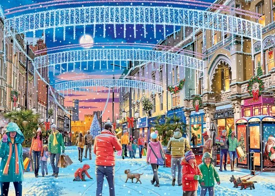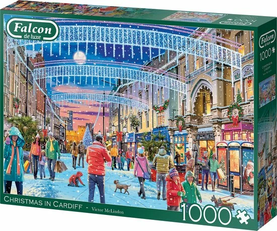 Falcon de Luxe Christmas in Cardiff is een prachtig ge?llustreerd legpuzzel van 1000 stukjes voor volwassenen, die deel uitmaakt van het puzzelthema kerst. Het levendige beeld neemt ons mee naar Cardiff waar de kerstverlichting en versiering de winkelstraat extra gezellig maken!