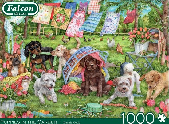 Falcon De Luxe Puppies In The Garden 1000 Stukjes – Legpuzzel Voor Volwassenen