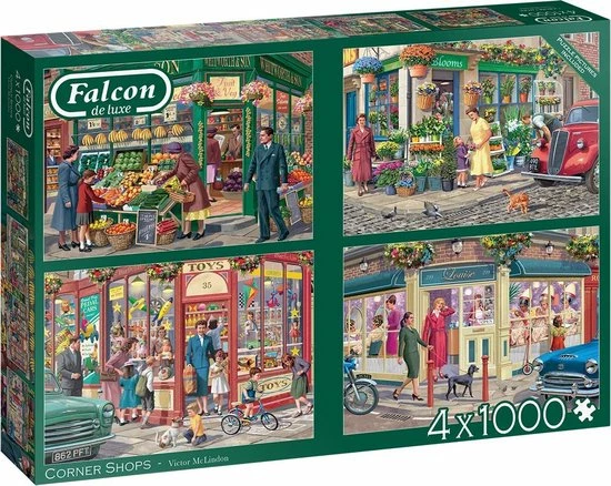 Falcon puzzel Corner Shops – Legpuzzel – 4×1000 stukjes