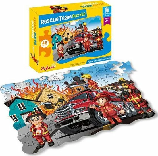 De stoere puzzel met het reddingsteam ?Rescue Team? bestaat uit 45 stukjes. De puzzelstukjes zijn bedrukt met mooie felle kleuren. De afbeelding is stoer en leerzaam.