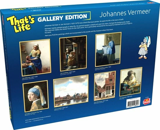 Hou jij van kunstwerken en vind jij puzzelen leuk? In deze Gallery Edition: Johannes Vermeer Puzzel zijn een aantal kunstwerken van Johannes Vermeer verwerkt. De legpuzzel bestaat uit wel 1000 stukjes en zorgt voor urenlang plezier. De prachtige kunstwerken van de kunstenaar Johannes Vermeer verschijnen als je de puzzel af hebt. Superleuk voor zowel jong en oud!