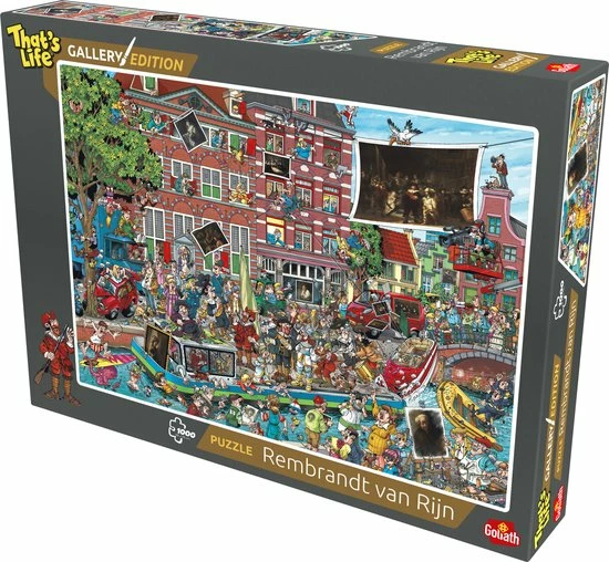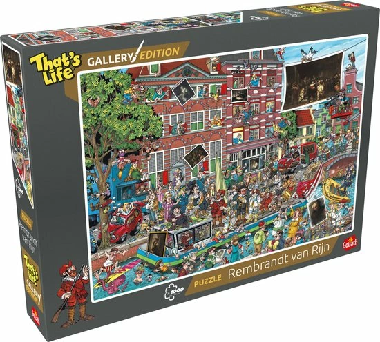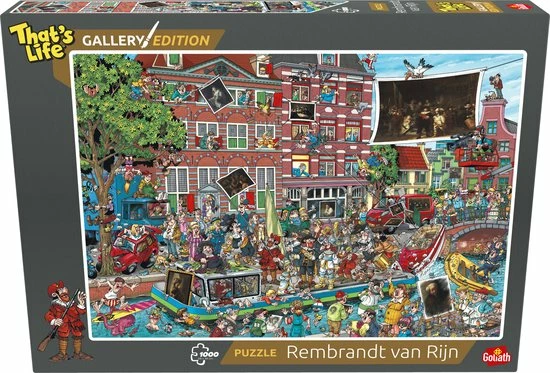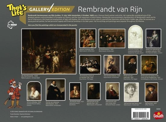 De That’s Life Gallery Edition: Rembrandt van Rijn puzzel heeft afmetingen van 68x48cm indien compleet. De doos inclusief puzzel weegt 725 gram.