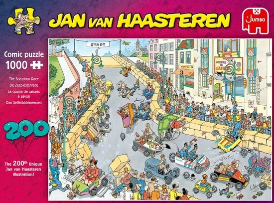 Jan van Haasteren puzzels zijn puzzels met veel kleur en details. Jan van Haasteren tekent al decennia lang humoristische platen die je steeds weer verrassen en laten lachen. De echte fans kennen de specifieke kenmerken van Jan van Haasteren en zoeken in elke puzzel direct naar de haaienvin, Sinterklaas, de handjes, het kunstgebit en Jan?s zelfportret. Jumbo heeft tientallen Jan van Haasteren puzzels in de collectie van 54 tot maar liefst 5.000 puzzelstukjes.