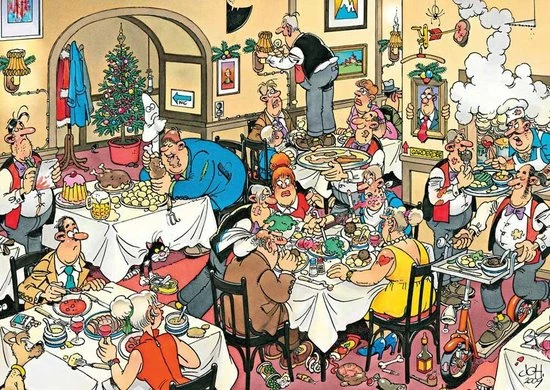 De puzzels van Jan van Haasteren staan bekend om hun kleurrijke en vrolijke platen. En dat geldt ook zeker voor deze Jumbo Jan van Haasteren A Dining Disaster Puzzel.