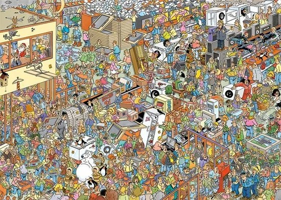 Leg de puzzel in elkaar en bekijk de vele vreemde en leuke situaties die plaatsvinden op de tekening. De puzzel is getekend door de beroemde Jan van Haasteren die al jaren exclusief voor Jumbo humoristische puzzels tekent.