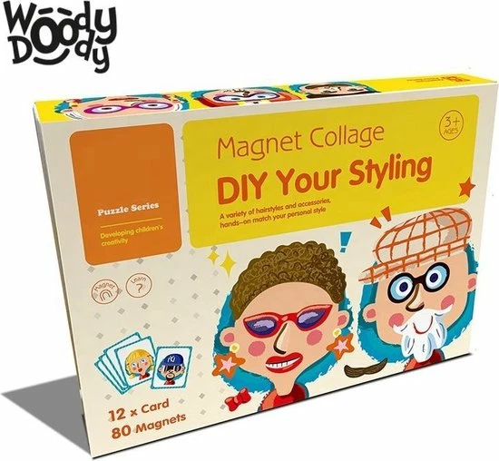 Een magnetisch plakboek met losse magneetjes waarmee je een gezicht kunt maken met losse haarstijlen, hoofdeksels, brillen, oortjes, neusjes en nog vele andere mogelijkheden.