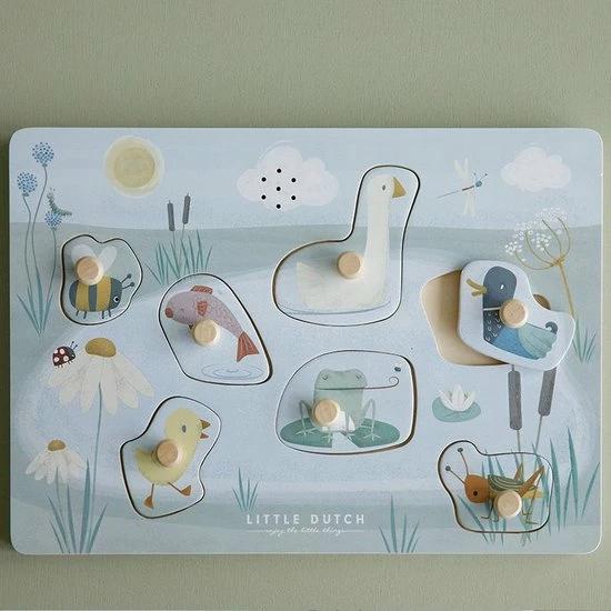 Maak kennis met Gans en zijn vriendjes. Herken hun vormen en unieke geluiden met deze leuke puzzel. Als je het diertje terugplaatst op het juiste plekje hoor je het plonsen, kwaken of zoemen. Ontworpen voor je kind om de levende wezentjes rond de vijver op het platteland te leren kennen.