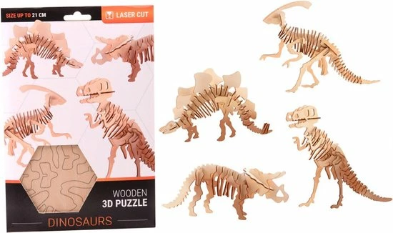 | Verpakkingsinhoud | Houten, 3D, dinosaurus, puzzel, 4, assorti |