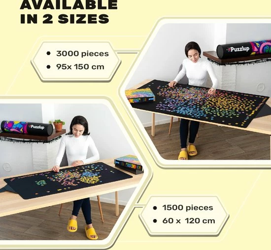 Dit formaat van 66 x 120 cm past op elke tafel en is perfect voor alle puzzels tot 1500 stukjes. Puzzlup zorgt ervoor dat jij heerlijk kan ontspannen en puzzelen zonder opruimzorgen.