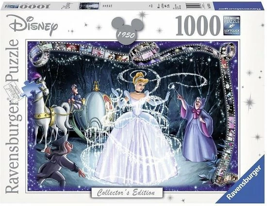 Ontsnap uit de realiteit en stap in de wereld van Ravensburger puzzels. Deze Ravensburger puzzel van 1000 stukjes is geschikt voor zowel beginnende als ervaren puzzelaars. En omdat onze geliefde puzzels een standaard formaat hebben, kun je het resultaat inlijsten en ophangen. Dankzij de met de hand gemaakte stansmessen is de vormvariatie van de stukjes oneindig. Jong en oud zullen genieten van deze Disney Cinderella puzzel met 1000 stukjes.