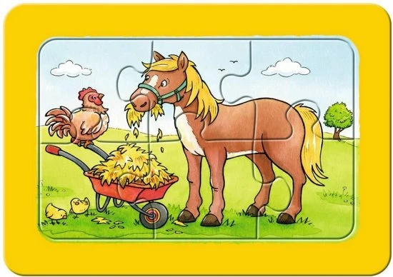 | Verpakkingsinhoud | Inhoud:, 3, raampuzzels, van, 6, stukjes |