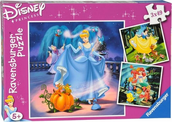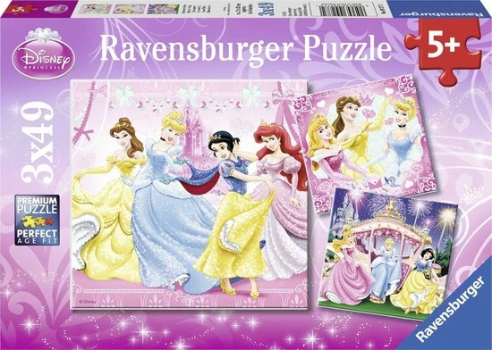 De drie afbeeldingen in 1 doos zorgen voor de nodige afwisseling. Dankzij de met de hand gemaakte stansmessen is de vormvariatie van de stukjes oneindig. Kinderen vanaf 5 jaar zullen genieten van de Disney Princess puzzels met 49 stukjes. Ravensburger puzzels met 49 stukjes met als thema Disney Princess.