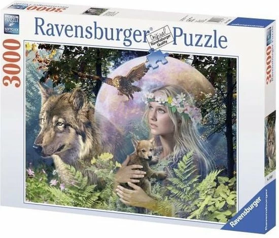 Ontsnap uit de realiteit en stap in de wereld van Ravensburger-puzzels. Met een Ravensburger puzzel van 3000 stukjes wordt het puzzelen een nog grotere uitdaging. Op dit formaat zijn de prachtige afbeeldingen van de puzzels van Ravensburger nog indrukwekkender. Als je op zoek bent naar langer puzzelplezier, dan is dit de juiste puzzel voor jou. Dankzij de met de hand gemaakte stansmessen is de vormvariatie van de stukjes oneindig. Jong en oud zullen genieten van deze Wolven in de maneschijn puzzel met 3000 stukjes.