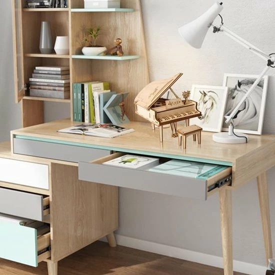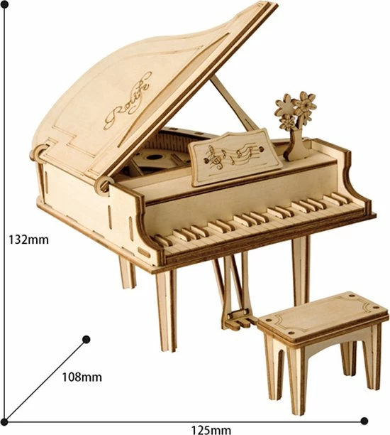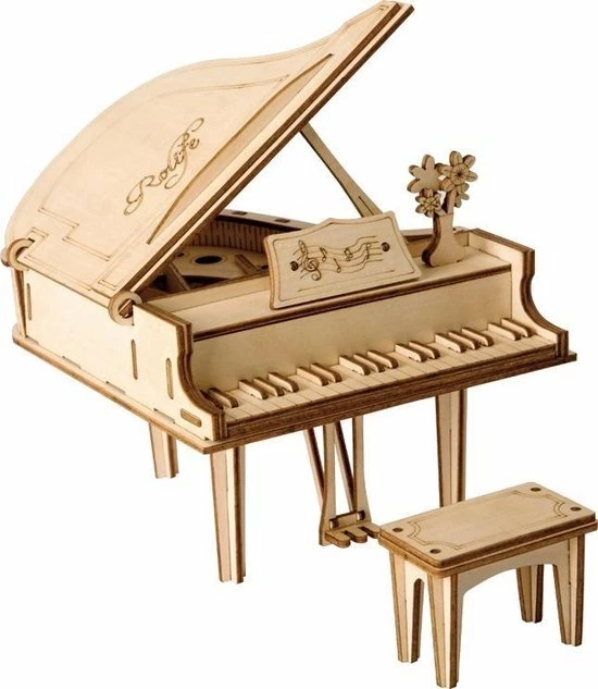 Dit leuke bouwpakket van een vleugel piano, de Grand Piano van Robotime, heeft een uniek en origineel ontwerp. De bouwplaten zijn allemaal laser voorgesneden.