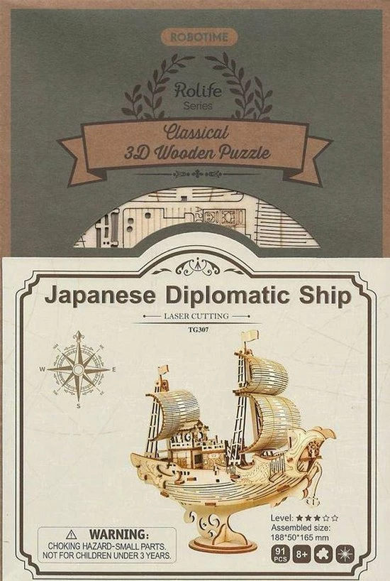Robotime 3D Puzzel Modelbouw Pakket Japanese Diplomatic Ship TG307