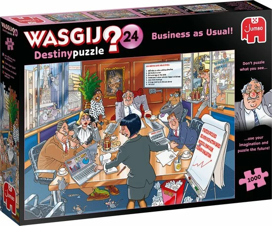 Deze Wasgij legpuzzels van Jumbo zijn speciaal ontwikkelt voor volwassenen. Anders dan bij andere puzzels, maak je bij Wasgij niet een afbeelding van de doos na maar moet je zelf je fantasie gebruiken om de puzzelplaat compleet te maken! Er zijn drie verschillende concepten: Original, Mystery en Destiny. Bij Wasgij Destiny moet je de hints en je fantasie gebruiken om er achter te komen hoe de toekomst eruit zal zien!